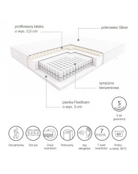 Silver to pokrowiec o strukturze przepuszczającej powietrze, co ułatwia w dużym stopniu wentylację wkładu materaca. Pokrowiec w kolorze białym elementami srebra o bardzo eleganckim, klasycznym wyglądzie. Pokrowiec z możliwością prania do 60°.
